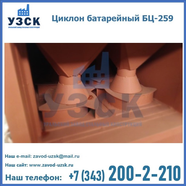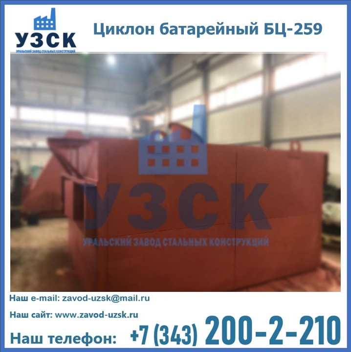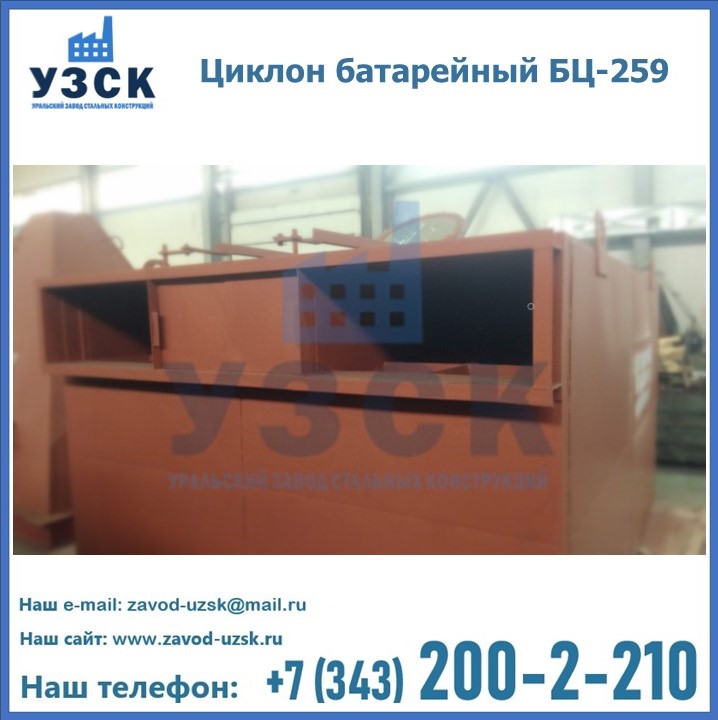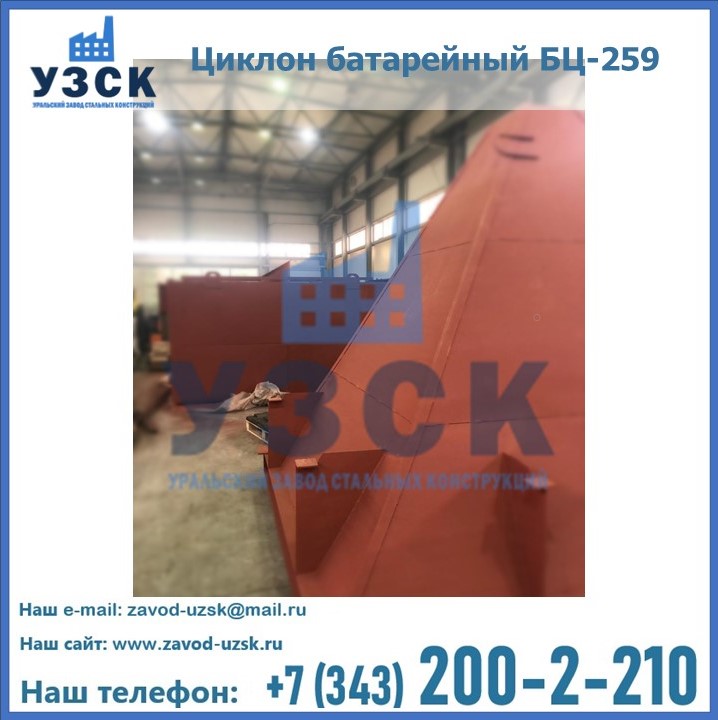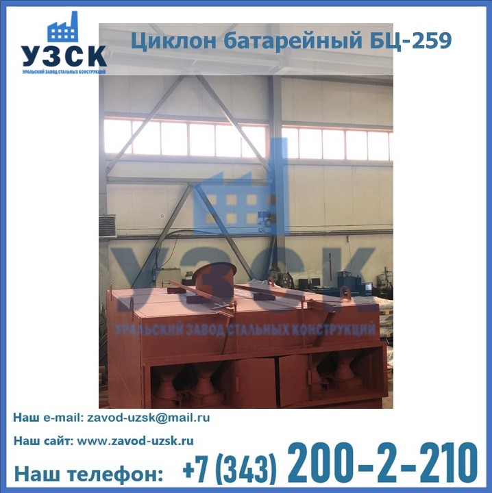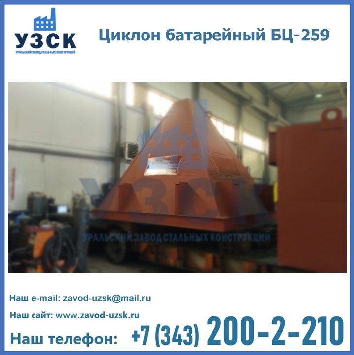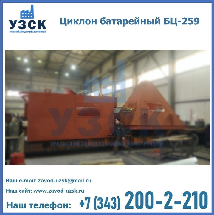 Приобрести качественное оборудование, в том числе, циклоны БЦ-259, можно в компании УЗСК в Орле. Мы предлагаем долговечную и надежную продукцию по приемлемой цене. Заказать и купить циклоны или другие изделия высокого качества можно через сайт Уральского Завода Стальных Конструкций, или позвонив по указанному в разделе «Контакты» телефону.