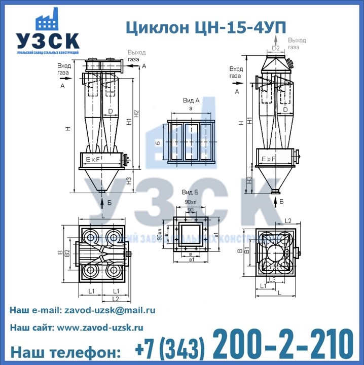 Завод «УЗСК» в Орле предлагает большой выбор циклонов ЦН-15-900×4УП и прочих устройств, полностью укомплектованных и готовых к эксплуатации. Мы гарантируем соответствие оборудования всем требованиям ГОСТ и ТУ, износостойкость и высокую производительность предлагаемого оборудования. Уральский Завод Стальных Конструкций изготавливает и продает надежное, эффективное и производительное оборудование, имеющее длительную гарантию и большой эксплуатационный ресурс. Если требуется изготовить циклон нестандартных размеров, то такой вариант выполнения заказа тоже предусмотрен, так как предприятие имеет собственные производственные площади и надежных поставщиков. На все поставляемое или производимое оборудование имеются чертежи и прочая техническая документация. Заказать и купить циклоны или прочее оборудование высокого качества и по доступной цене можно через наш сайт или по указанному в разделе «Контакты» телефону.
