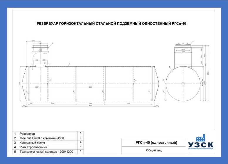 РГСДп-40: горизонтальный резервуар двустенный подземного расположения.