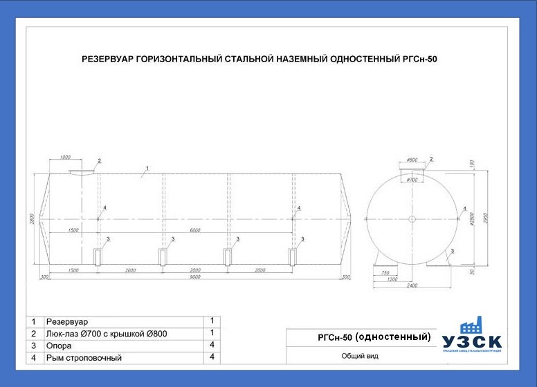 РГСн-50: горизонтальный резервуар одностенный наземного расположения;