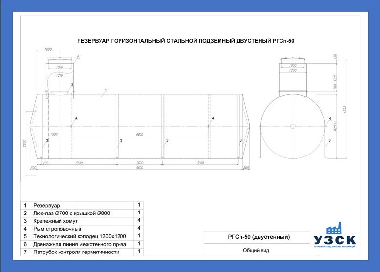 РГСДн-50: горизонтальный резервуар двустенный наземного расположения;